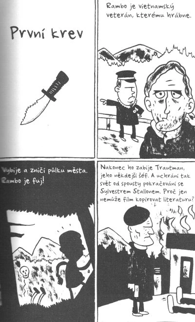 V krátkých komiksových stripech vám nabízíme štiplavý destilát z knih, které stojí za přečtení, anebo alespoň za prolistování. Každá knížka je též představena svou první a poslední větou, které často provokují k představám, jaký vlastně děj knihy je. Tenhle neobyčejný průvodce vás třeba inspiruje při rozhodování, čím začít, ať už je to Americké psycho, Hlava XXII, Da Vinciho kód nebo Tři mušketýři...