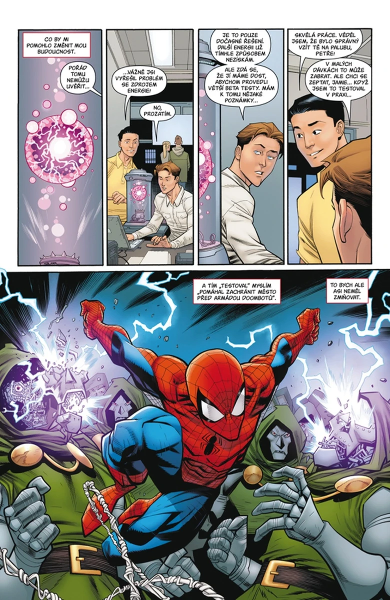 Život Petra Parkera byl vždycky komplikovaný a na tom se nic nezměnilo. Ale má řešení – vědu! Mezitím J. Jonah Jameson začíná nový život jako moderátor podcastu – a jeho prvním hostem je Spider-Man! JJJ a Spidey už spolu nějakou dobu mají docela dobré vztahy, takže je jen příznačné, že se to všechno „Jásající“ Jonah pokouší zlikvidovat, a přitom ještě ohrozí celé město. Navíc se do příběhu vloží zbrusu nové padoušské kasino a především Boomerang, jehož dlouho skrývané tajemství konečně vyplave napovrch… s obrovskými (doslova) důsledky!