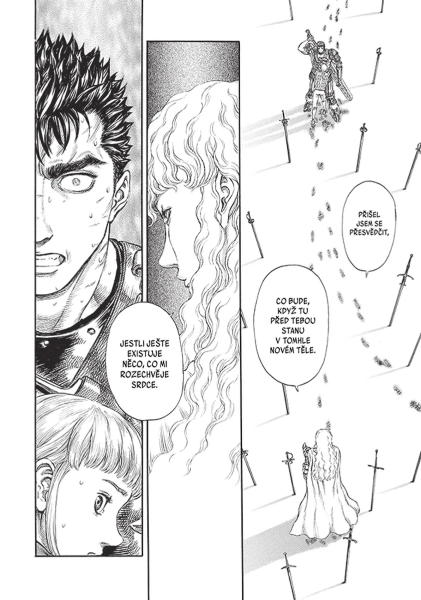 Po pádu Věže odsouzení a zkáze Albionu se Guts, Casca a Puk vracejí do Godóovy kovárny, aby v tamní elfí jeskyni unikli před zlými duchy přitahovanými cejchem. Jenže tam na ně čeká překvapivá návštěva – znovuzrozený Griffith, se kterým má Guts ještě spoustu vyřizování. Začíná kapitola „Kronika války svatého zla“!