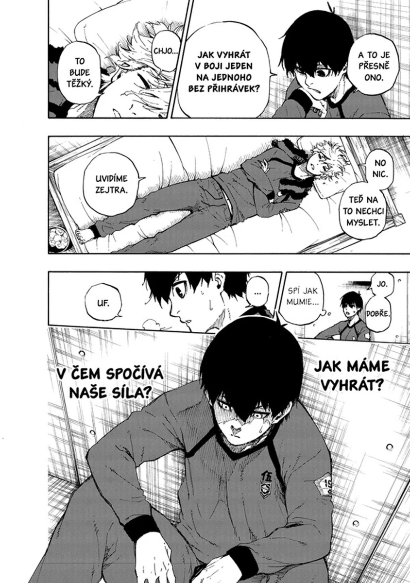 Isagi a Nagi se ocitají bez Bačiry, kterého k sobě přetáhla nejlepší trojice, jíž vévodí Rin Itoši. Musí se vzchopit k dalšímu boji a rovněž vymyslet způsob, jak v příštím zápase zvítězit v situaci, kdy musí hrát sami za sebe a nemohou se spolehnout na cizí přihrávky. Jedině tak totiž stanou po boku dalších geniálních hráčů a získají zpět vše, co ztratili.