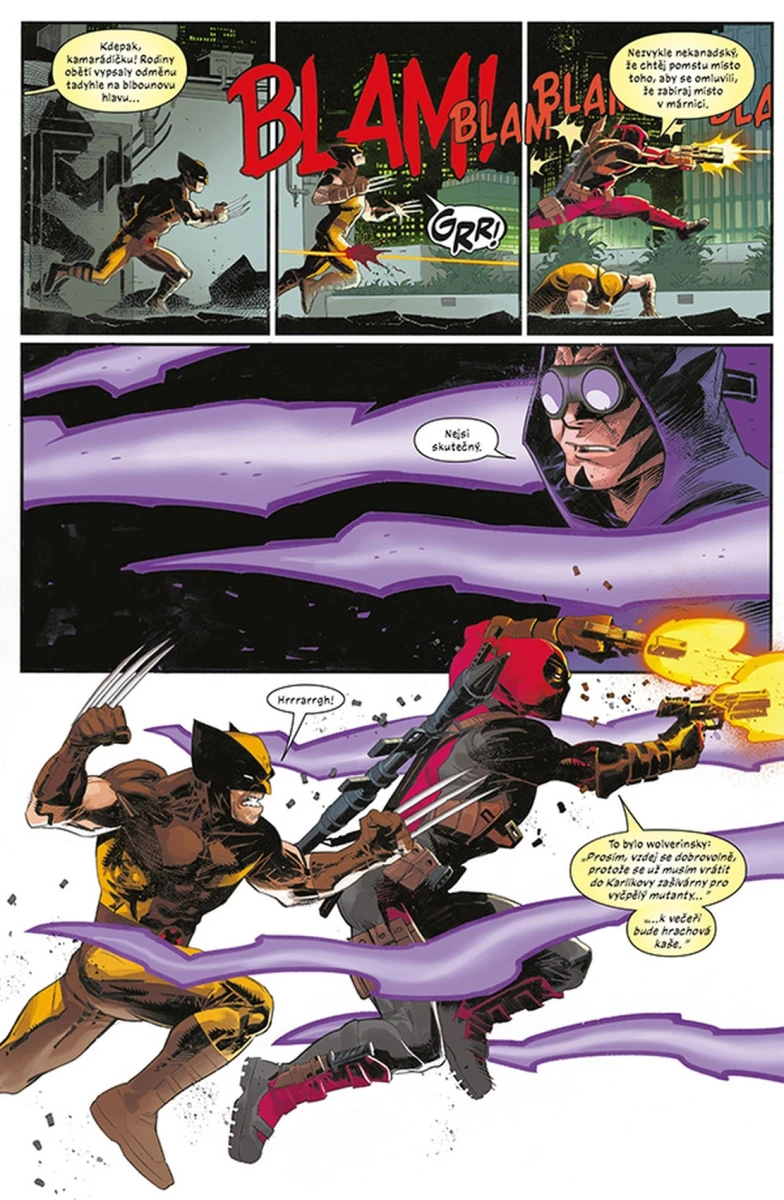 Tahle nejnekompatibilnejší dvojka v dějinách popkultury se zase střetává – v ukrutně napínavém dobrodružství! Je to tak, Wade Wilson a Logan jsou na konci světa – a jdou jeden druhému po krku! Záhadný Delta věří ve změnu. Změna je dobrá. Ale jakmile se mu v hledáčku objeví Deadpool a pak se do toho připlete i Wolverine, může to dopadnout jinak než katastrofou? Nebo to skončí hůř než kdy dřív? Připravte se na třetí světovou s tím nejdivočejším párečkem ze světa komiksu. Zůstanou trčet v zasněžené pustině bez šance na přežití. Ale zase mají jeden druhého! Pokud dokážou porazit vylepšené vojáky Těch, kdo přihlížejí, čeká je už jen jedna poslední bitva: Logan vs. Wade Wilson! A to může skončit... jenom smrtí! No fakt! Vždyť si to přečtěte!