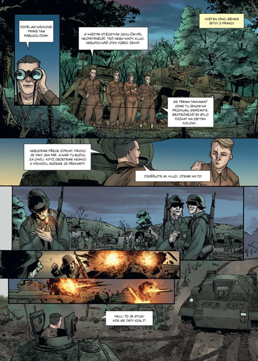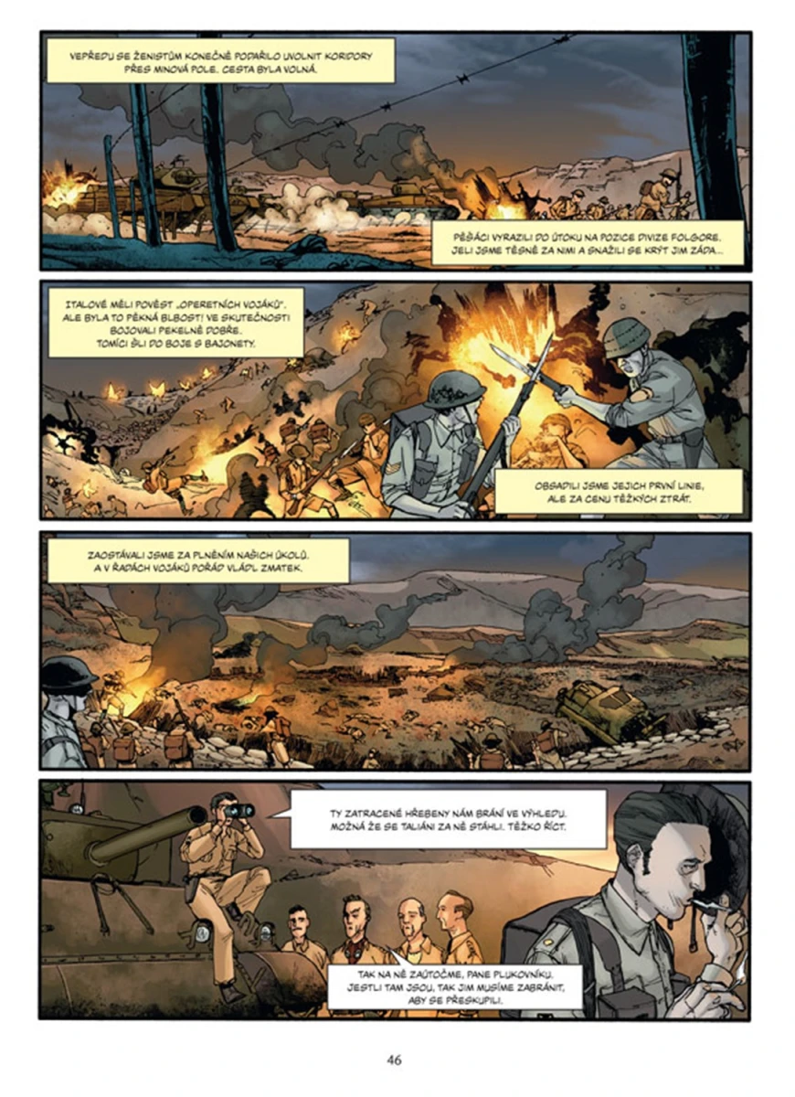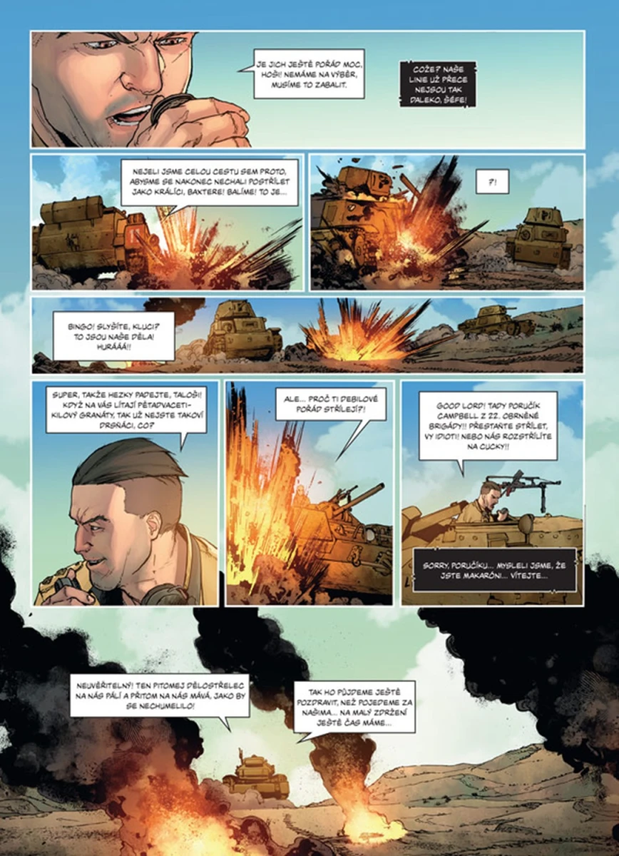 Zlomová bitva na severoafrické frontě druhé světové války z pohledu posádky britského tanku Crusader. Pouštní oblast mezi Libyí a Egyptem skýtá nádherné scenérie, ale život je zde neobyčejně tvrdý. A co teprve, když zuří válka. Tento komiks není jen příběhem bitvy, v níž se střetly německé a italské tanky vedené „Pouštní liškou“ Erwinem Rommelem s Brity a jejich spojenci pod velením Bernarda „Montyho“ Montgomeryho, ale i silným příběhem o mužích, kteří se ocitli v pekle zvaném El Alamein.