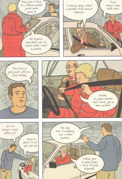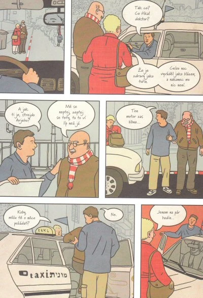 Jenomže my ve filmu nejsme, jsme v realitě (přinejmenším v realitě grafického románu), a tak Koby Franco otce upřímně nesnáší a ledaco mu vyčítá, jeho průvodkyní je nepříliš pohledná zakomplexovaná dívka z bohaté rodiny, proti níž je v permanentní vzpouře, a cestu soudobým Izraelem provázejí ukrutně civilní setkání se spoustou prapodivných, nehrdinských postav. A výsledkem pátrání není dojímavá scéna, při níž se všichni shledají a zapláčou si, ale nečekaný, trpký zvrat, který ovšem nedojme o nic méně - jen je uvěřitelnější.