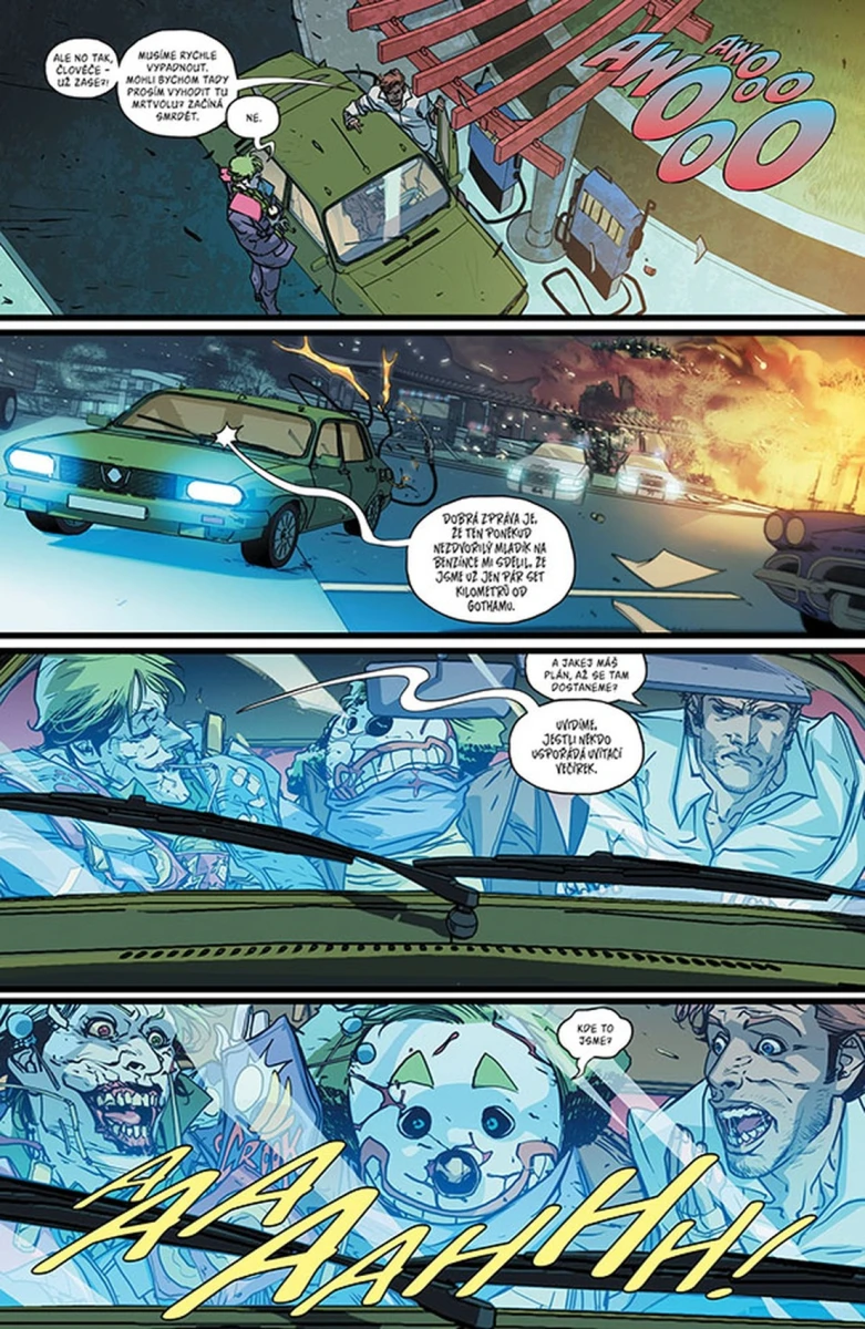 Souboj dvou identických Jokerů vrcholí a Gotham se mění ve válečnou zónu, kde sem tam něco exploduje, vykolejí nějaké to metro a sem tam se střetnou dvě gangsterské armády nepříliš loajálních jokerovských přisluhovačů. Chaos dosahuje maximálních hodnot a všem je jasné jen jedno − že finále bude bombastické.