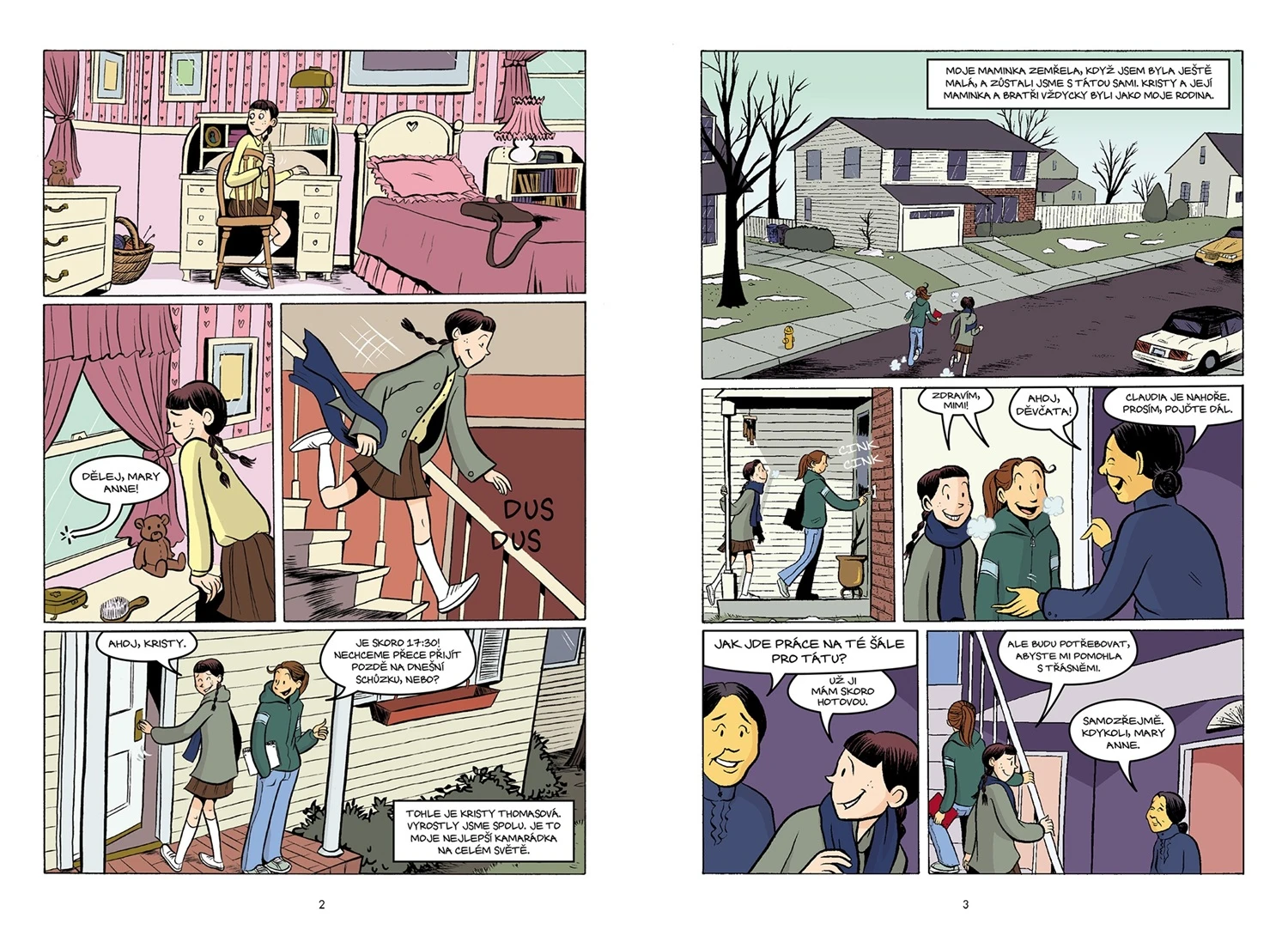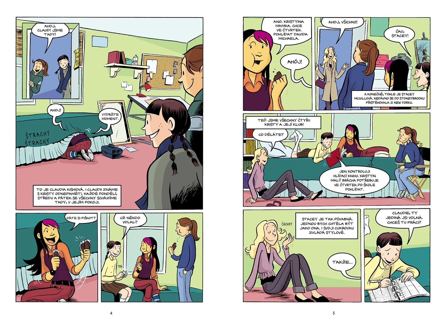 Kristy, Mary Anne, Claudia a Stacey jsou nejlepší kamarádky, které společně založily klub na hlídání dětí. Dlouho všechno výborně fungovalo, měly spoustu práce a děti je milovaly. Teď se ale strašně pohádaly a žádná z nich se nechce omluvit. Jejich konflikt zasahuje dokonce i do hladkého chodu klubu. Nenápadná, stydlivá Mary Anne si však kupodivu brzy najde náhradu: novou kamarádku! A co na to ostatní členky klubu – mají ještě šanci dát se znovu dohromady? Je tu třetí díl komiksové série od Rainy Telgemeierové, v němž převyprávěla příběhy stejnojmenné knižní série Ann M. Martinové, na jejíž motivy byl natočen též populární seriál. Jde o jednu z nejpopulárnějších sérií v historii vydávání komiksů vůbec.