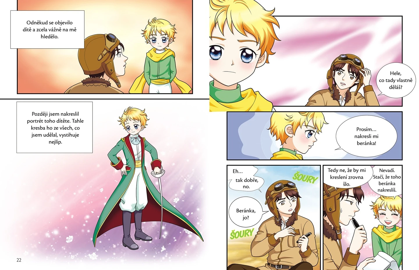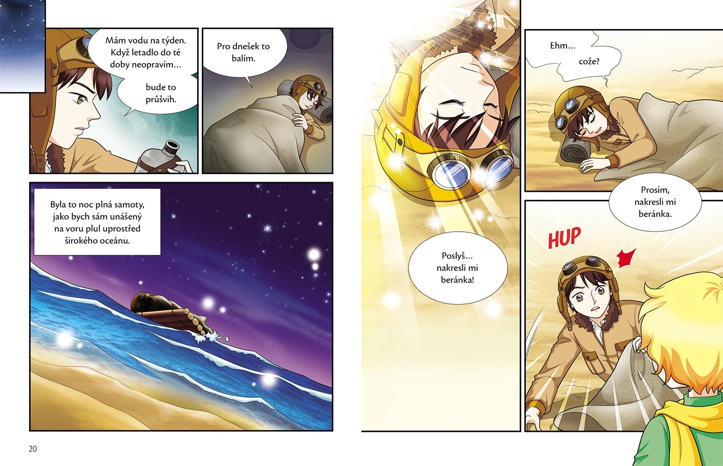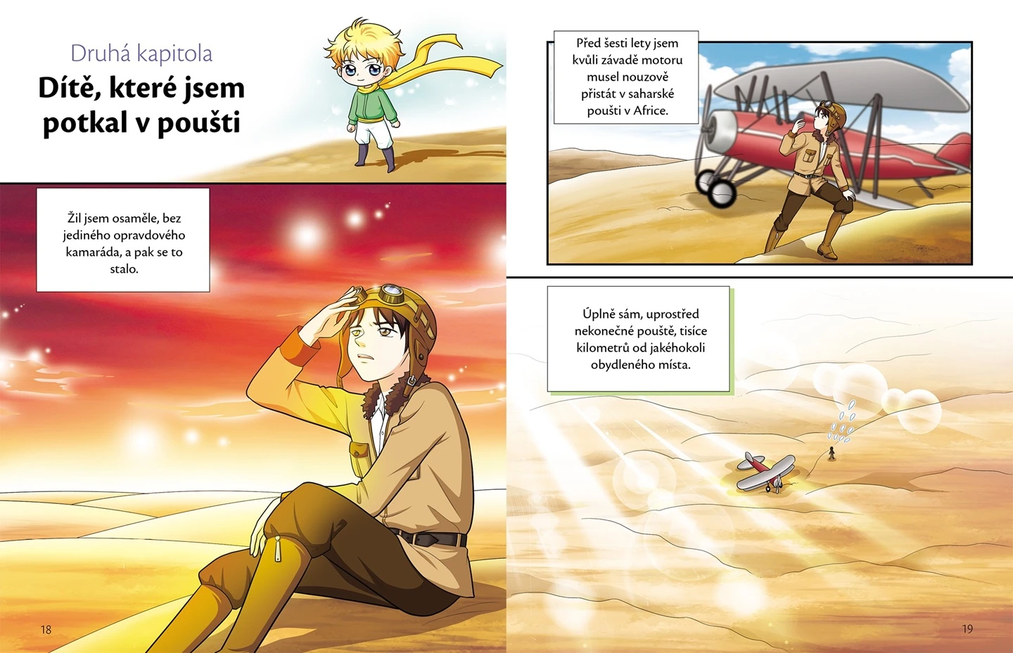 Malý princ, který žil na planetce B612, cestoval po různých planetách, až nakonec dorazil na Zemi. Jaký význam bude mít jeho setkání s pilotem, který se svým letadlem havaroval v poušti? Představujeme mistrovská díla světové lieratury v komiksovém zpracování, která by si měli přečíst všichni žáci základních škol. Tato díla mají za úkole přispět nejen k rozvoji citlivosti a charakteru dítěte, ale zároveň podpořit rozvoj slovní zásoby a čtenářské gramotnosti.