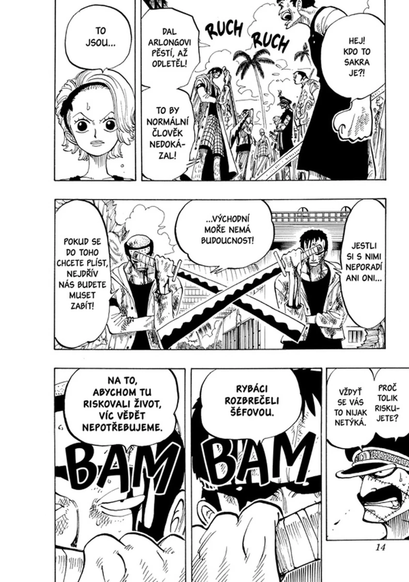 Nami se Luffymu konečně svěřila se svým trápením, a on tak stanul tváří v tvář Arlongovi. Ten však našeho hrdinu shazuje do vody, ve které je Luffy naprosto bezmocný, takže se do závěrečného boje vrhá i zbytek posádky! Dobrodružná plavba za Velkým pokladem pokračuje!