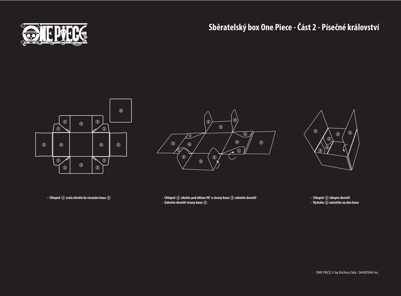 Jedná se o druhý z elegantních knižních boxů, do kterých se vždy vejde jeden zásadní dějový oblouk série One Piece. V tomto případě druhých dvanáct knih, tedy díly 13 - 24. Materiál je z pevného kartonu. Box bude doručen v rozloženém stavu s podrobným návodem. Pro jeho složení nebude potřeba žádného lepidla či nůžek.