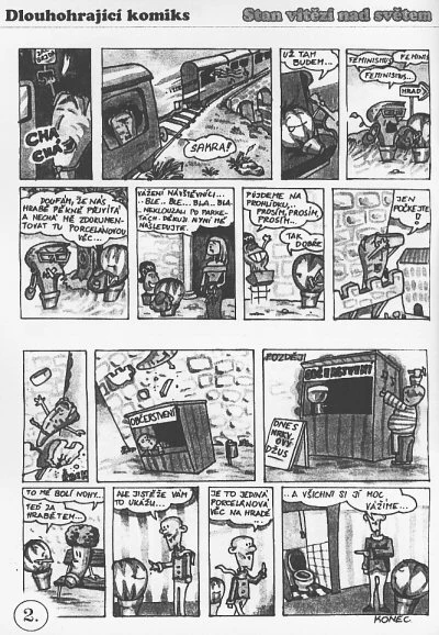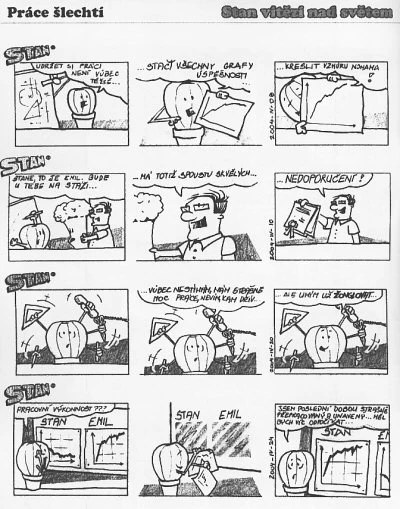 Dalším stupněm stále ještě studentské legrace bylo umístění figurky do tří okének klasického komiksového stripu. V té době bavil Stan jen hrstku spolužáků a jeho budoucnost byla nejistá.