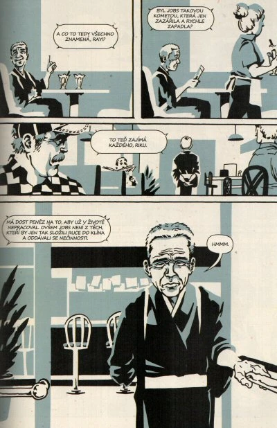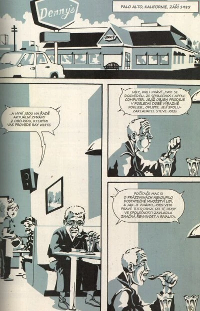 Komiks vykresluje přátelství dvou silných osobností. V příběhu se prolíná současnost a minulost, a to od 70. let minulého století až po rok 2011. Hlavní zájem se však soustředí na Jobsův odchod z Applu v roce 1985, kdy začal intenzivně studovat s Kobunem. Tato doba měla zásadní význam pro vše, co se později v Applu událo v oblasti jejich produktového designu a obchodní strategie.