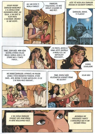 Aby unikla smrti, vypráví Šahrazád svému manželovi, perskému sultánu, tisíc a jednu noc kouzelné příběhy. V této knize naleznete dva z nich: první je příběh o princezně Nourannahar, které se dvoří tři bratři a utkají se o její ruku. Druhá pohádka je příběh o mořské královně Gelnare, která se provdá za pozemského prince. Jejich syn Bader, který se zamiluje do dcery mořského krále, musí bojovat proti démonům a čarodějkám, aby svou lásku zachránil. Nekončící pohádky, slova, která proudí jako kouzelný pramen ze rtů krásné Šahrazád.
