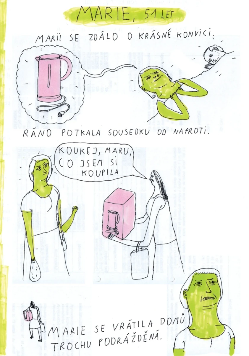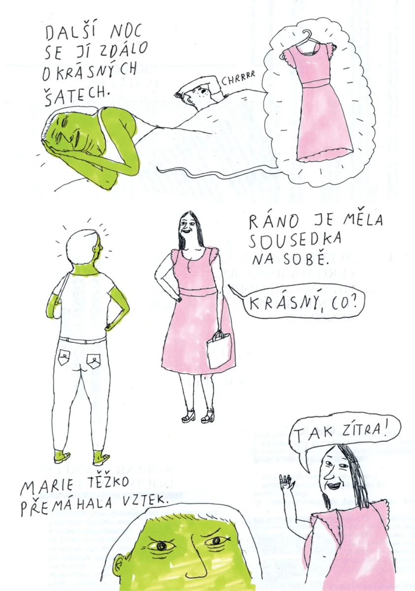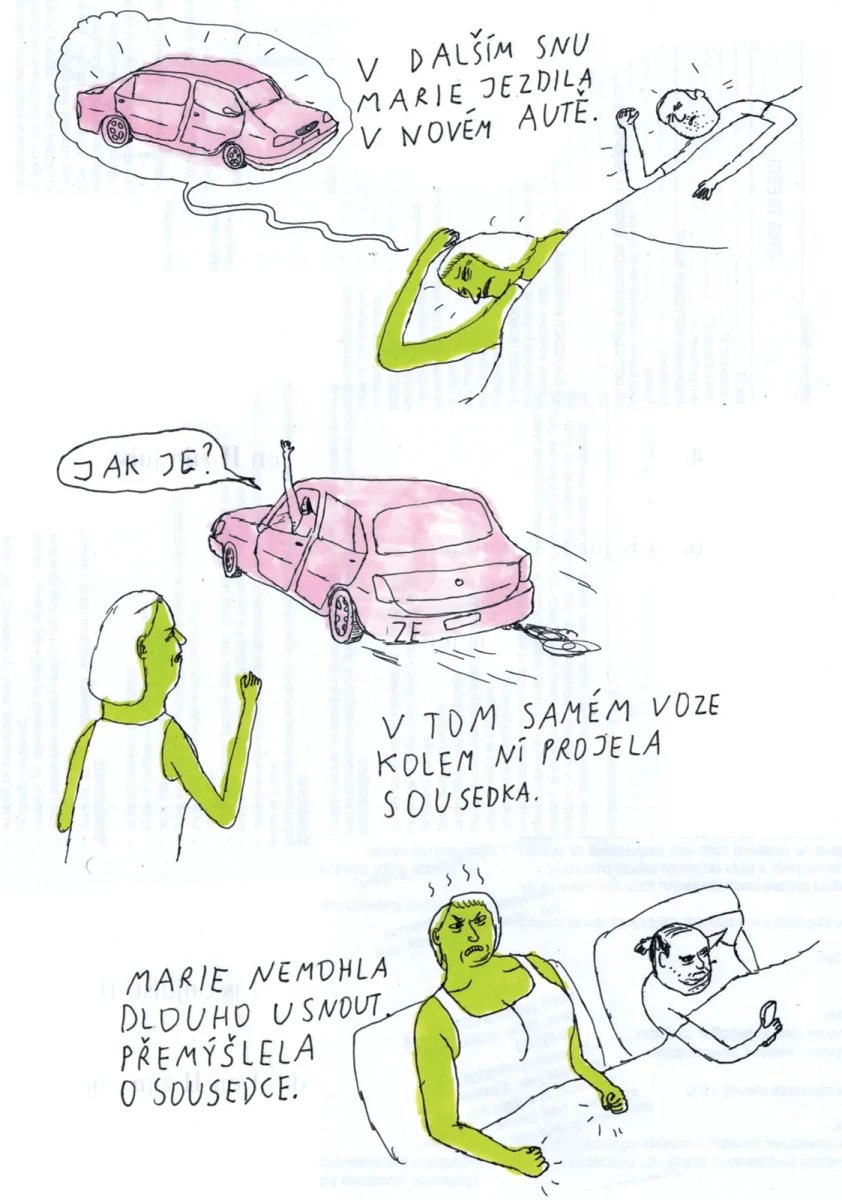 Janek Koza se dívá na ty, které raději přehlížíme, aby nám připomněl, že se od nich vlastně nijak nelišíme. Autor přináší portréty deseti postav, rozechvělých stejně jako jeho kresba, které se potýkají s frustrující prací, nudou, nefunkčními vztahy nebo noční můrou nespavosti. Ve snaze změnit svůj osud se noří do snových představ a zažívají chvilky naplnění, které na okamžik prozáří šero každodenní polské reality. Po probuzení se však opět ocitají v apatii a osamění. Koza, se svým typickým naturalistickým pohledem, vykresluje trápení i tužby napříč generacemi – od lidí kolem dvaceti až po padesátníky. Začíná jejich zlý sen ve chvíli, kdy položí hlavu na polštář, nebo když ráno otevírají oči?